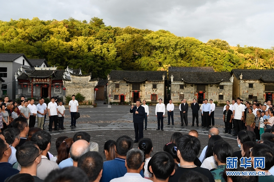 9月16日至18日,中共中央总书记、国家主席、中央军委主席习近平在湖南考察。这是16日下午,习近平在郴州市汝城县文明瑶族乡沙洲瑶族村察看村容村貌,同村民亲切交谈。新华社记者 谢环驰 摄