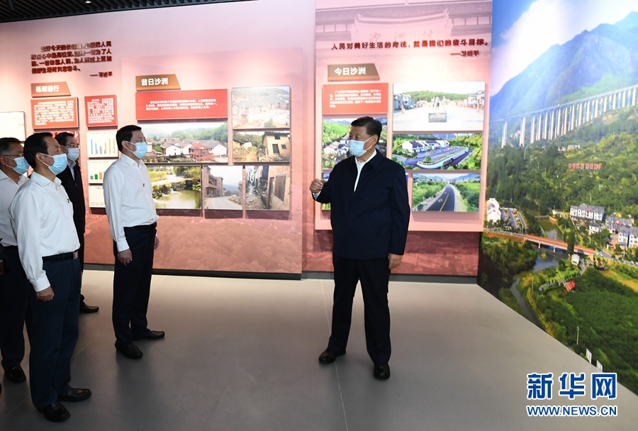 9月16日至18日,中共中央总书记、国家主席、中央军委主席习近平在湖南考察。这是16日下午,习近平在郴州市汝城县文明瑶族乡沙洲瑶族村“半条被子的温暖”专题陈列馆,了解当地加强基层党的建设、开展红色旅游和红色教育情况。新华社记者 谢环驰 摄