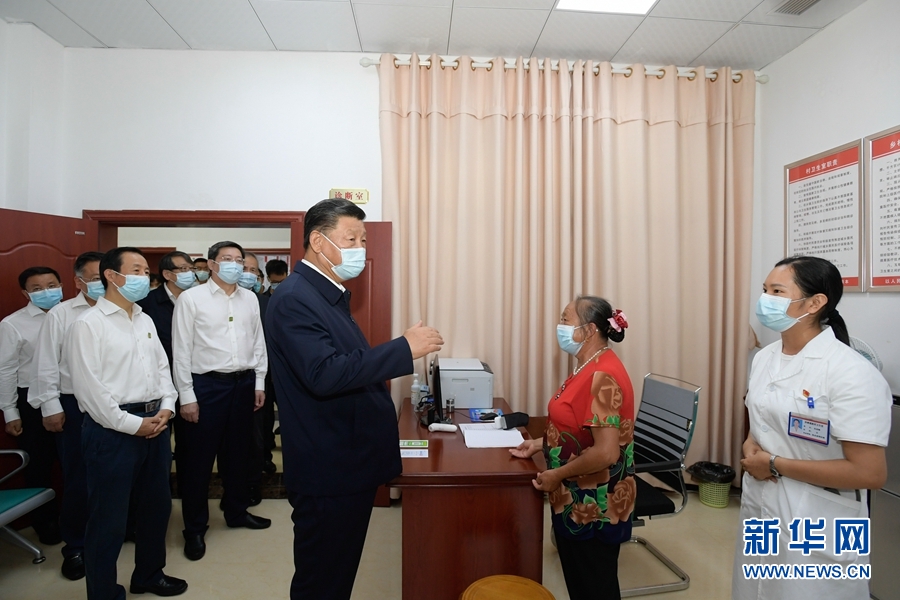 9月16日至18日,中共中央总书记、国家主席、中央军委主席习近平在湖南考察。这是16日下午,习近平在郴州市汝城县文明瑶族乡沙洲瑶族村卫生室,了解基本医疗保障情况。新华社记者 李学仁 摄