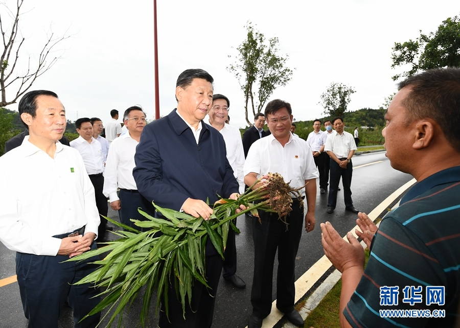 9月16日至18日,中共中央总书记、国家主席、中央军委主席习近平在湖南考察。这是16日下午,习近平在郴州市汝城县文明瑶族乡沙洲瑶族村沙洲现代农旅示范基地,了解扶贫产业发展和增收情况。新华社记者 谢环驰 摄