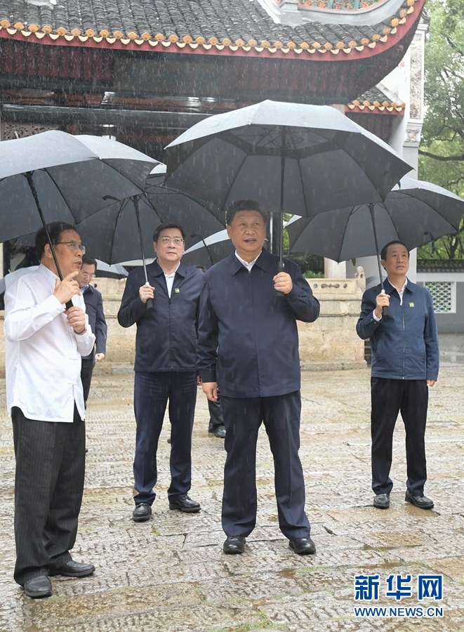 16日下午,习近平首先来到郴州市汝城县文明瑶族乡沙洲瑶族村考察调研。1934年,红军长征路过这里,留下了“半条被子”的感人故事。习近平走进“半条被子的温暖”专题陈列馆,了解当地加强基层党的建设、开展红色旅游和红色教育情况。习近平指出,“半条被子”的故事充分体现了中国共产党的人民情怀和为民本质。长征途中,毛泽东同志指出,中国工人、农民、兵士以及一切劳苦民众的出路在共产党主张的苏维埃红军,我们一定会胜利。今天,我们更要坚定道路自信,兑现党的誓言和诺言,同人民群众风雨同舟、血肉相连、命运与共,继续走好新时代的长征路。