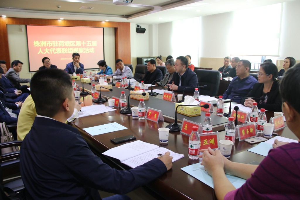 11月10日,驻荷塘区株洲市第十五届人大代表联组视察荷塘区精准就业服务和助力居民就业工作。市人大常委会原主任姜玉泉、副秘书长王龙才、区委书记邬凌云、区人大常委会党组书记、主任刘国梁等30余名代表参加活动,副区长刘必林陪同视察。