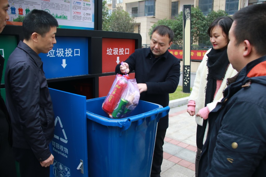 在郦城小区,邬凌云一行仔细检查了小区内“四分垃圾桶”的垃圾投放情况,听取了当前垃圾分类工作推进进展情况汇报,并同小区居民交流,了解他们对垃圾分类工作的知晓、参与程度。邬凌云强调,要提高政治站位,按照市委市政府部署要求,全力以赴抓好城乡生活垃圾分类工作。要坚持实事求是的原则,摸清底数、因地制宜、稳步推进、务求实效,在实践中逐步探索出符合我区实际的城乡生活垃圾分类具体工作模式。要加大宣传力度,全面提升广大群众对生活垃圾分类投放的知晓率和参与度,引导居民群众形成主动分类投放垃圾的良好习惯。