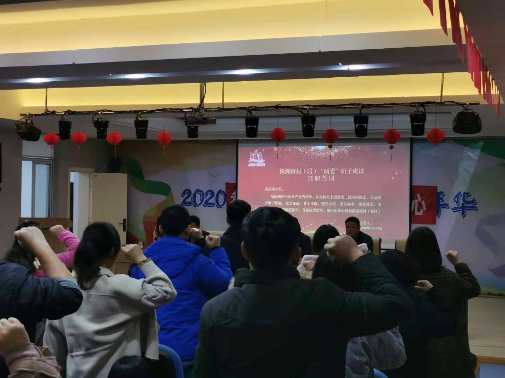 会议第一阶段邀请了市委党校优秀青年教师讲授了题为《深入学习贯彻党的十九届五中全会精神—兼述建党百年历史回顾》的精彩党课,党课历时2小时,结合历史和当下实际,内容丰富,深入浅出,对开展基层工作有很好的指导作用;会议第二阶段,相关分管领导分别就换届工作通报、后续工作安排及勤政廉政要求进行了安排部署,“两委”成员进行了庄严的集体宣誓。