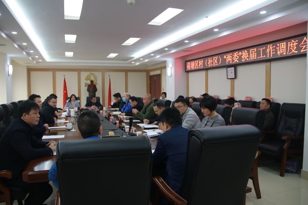 12月19日,荷塘区召开村(社区)“两委”换届工作调度会,区领导邬凌云、郑志富、余鹏、王伟胜、黄团结、刘定光、冯晓出席会议。