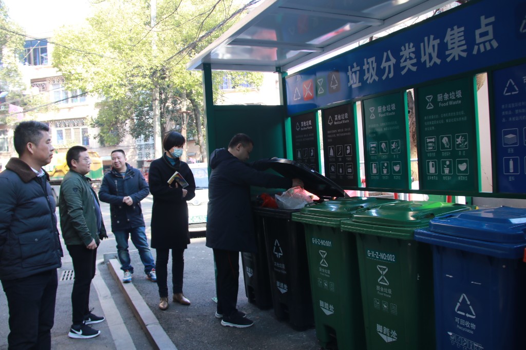 邬凌云一行实地查看了小区生活垃圾分类回收设备设置、居民投放使用和垃圾分类宣传氛围等情况,听取了垃圾分类清运体系构建和工作进展情况汇报,详细了解了当前工作中存在的问题和短板。