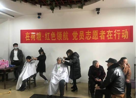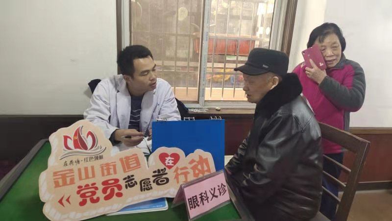 金山街道流芳社区党支部结合主题党日活动开展义诊、理发等活动