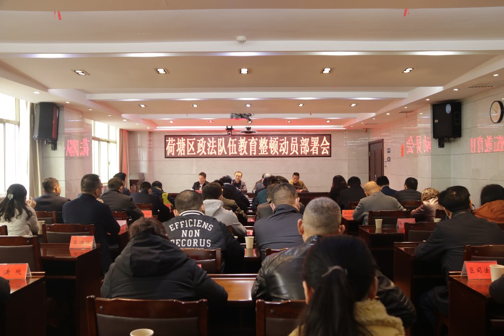 3月4日,荷塘区召开政法队伍教育整顿动员部署会,区领导邬凌云、郑志富、余鹏、王冬、黄团结、黄玉丰、陈卫华、龙志奇出席会议。