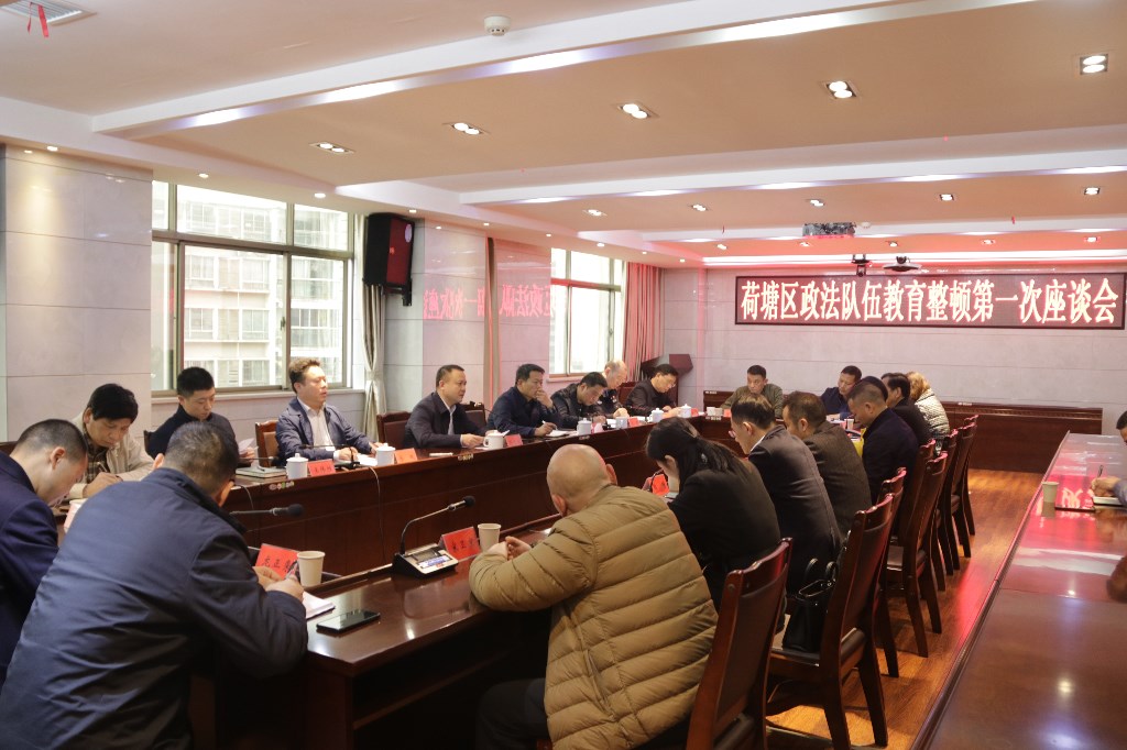 3月18日,荷塘区召开政法队伍教育整顿第一次座谈会,围绕政法队伍教育整顿工作征求意见建议。区领导邬凌云、郑志富、余鹏、王冬、王伟胜、黄团结、黄玉丰、陈卫华出席会议。