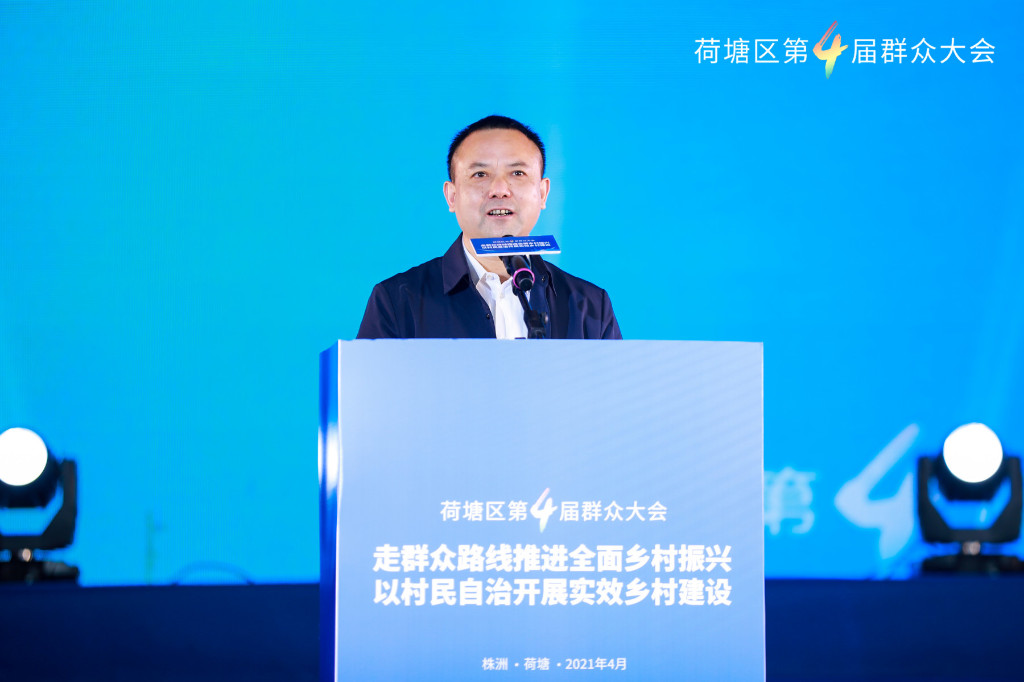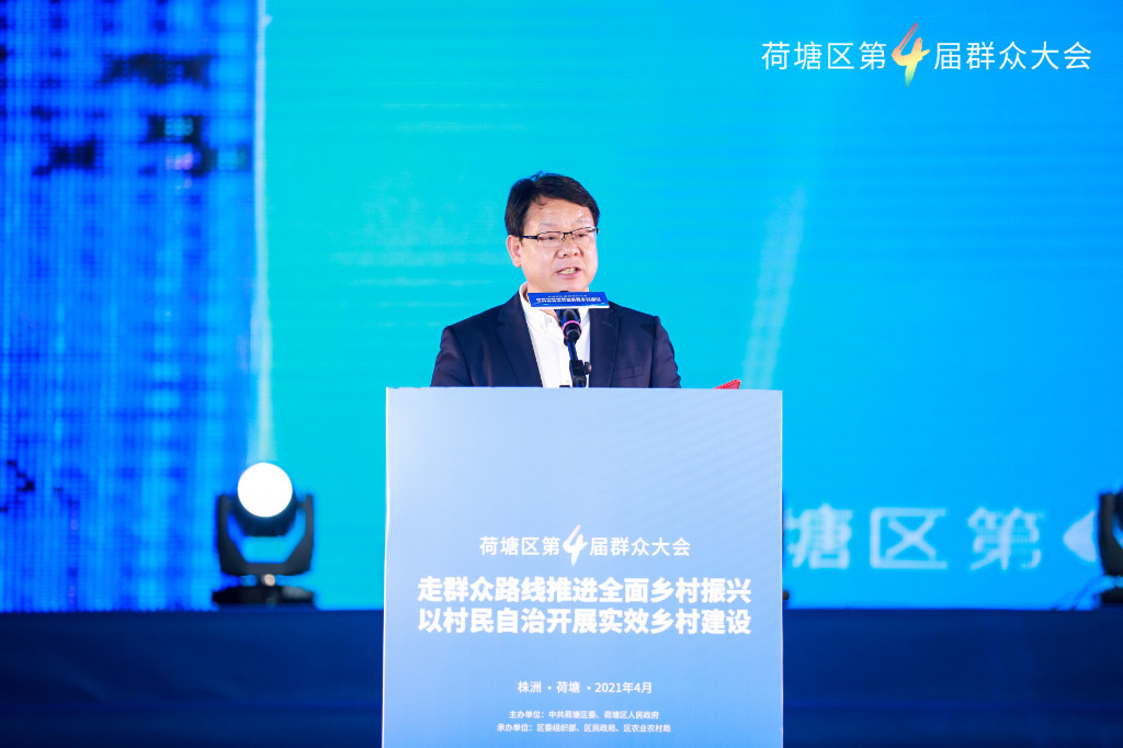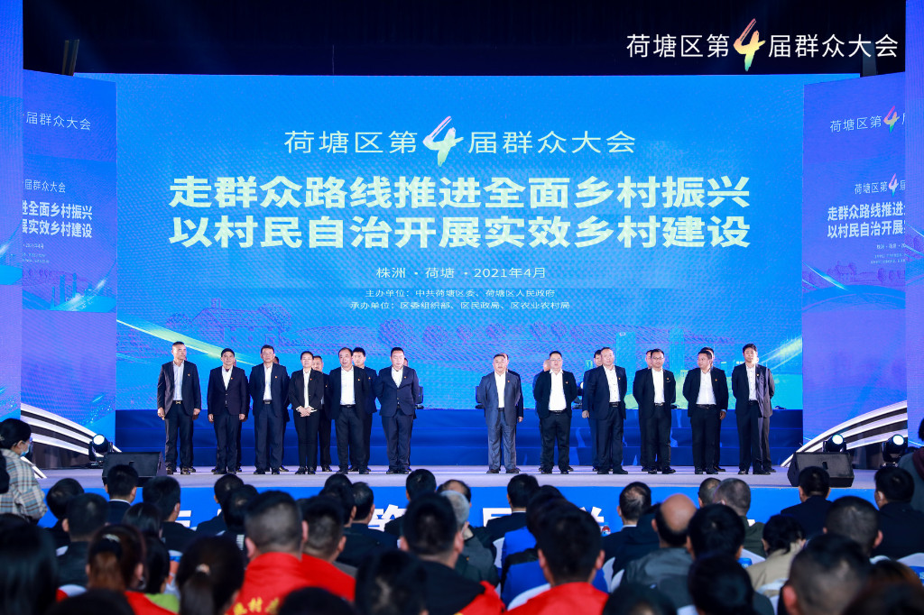 4月17日,严格按照疫情防控相关要求,荷塘区第四届群众大会在株洲市第四中学体育馆成功举办,该届群众大会的主题是走群众路线推进全面乡村振兴,以村民自治开展实效乡村建设。省农业农村厅农村合作经济指导处处长周立华,省农业农村厅农村合作经济指导处副处长张志兵,市委农办主任、市农业农村局党组书记张智敏,市民政局党组成员、副局长王璟,市委宣传部四级调研员阳曼生,全体在家县级领导,区直部门、市直驻区分支机构主要负责人,镇、街道党政班子成员,村两委班子成员,各村志愿帮扶队成员、微信盟主,城乡帮困项目负责人以及第二、三批区驻村工作队员参加了活动。