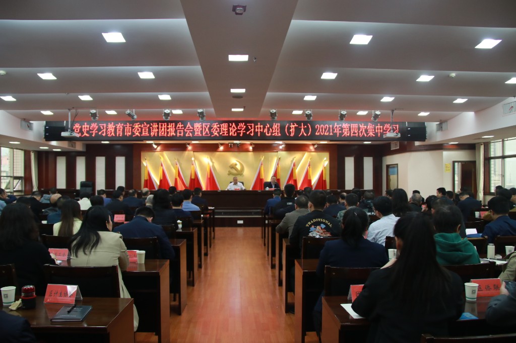4月16日,荷塘区召开党史学习教育市委宣讲团报会暨区委理论学习中心组(扩大)2021年第四次集中学习会,党史学习教育市委宣讲团成员、市直机关工委常务副书记曹跃良作宣讲报告。