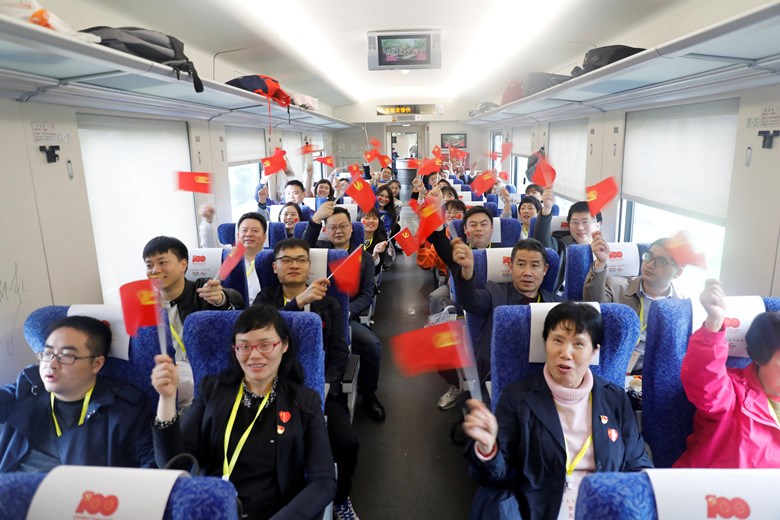 本趟列车途经醴陵、攸县、茶陵、炎陵等站点,以车厢为单位,在株洲市城发集团“红色主持人”“红色播音员”的带领下,党员们重温了入党誓词,唱红歌、看党课党史视频、进行“株洲红色历史”知识抢答赛…《党史上的今天》《烽火岁月家国情》《八担丘——毛泽东给部队上政治课》等红色课堂开展得有声有色;《陈觉、赵云霄:两封催人泪下的遗书》等红色故事被娓娓道来。