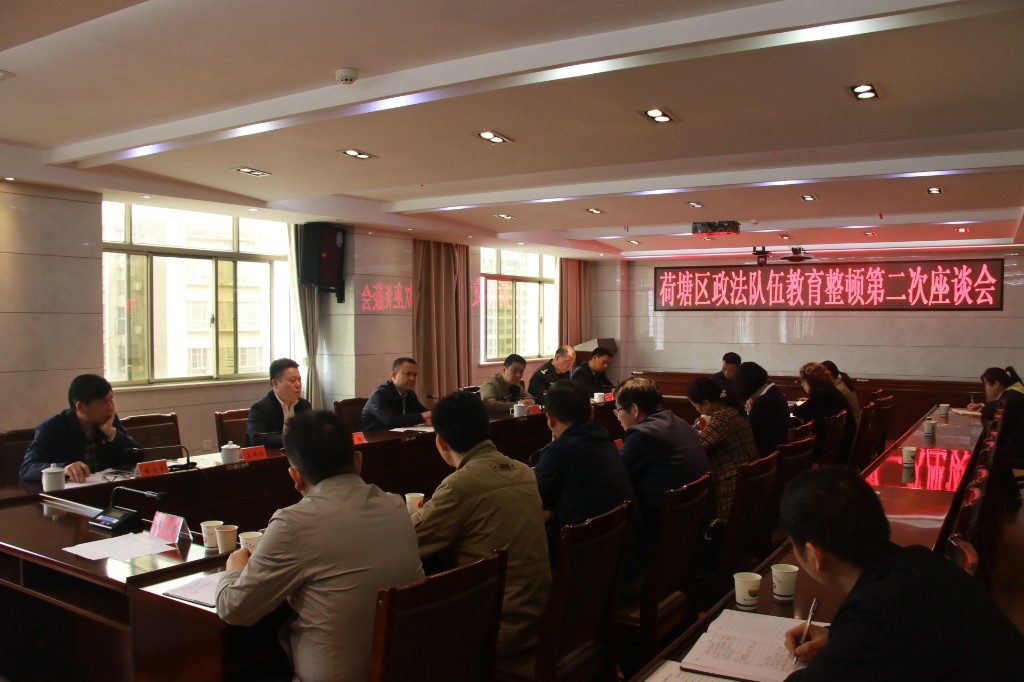 4月20日,荷塘区召开政法队伍教育整顿第二次座谈会,广泛听取社会各界意见建议。区领导邬凌云、郑志富、余鹏、王冬、王伟胜、黄团结、黄玉丰、陈卫华参加会议。
