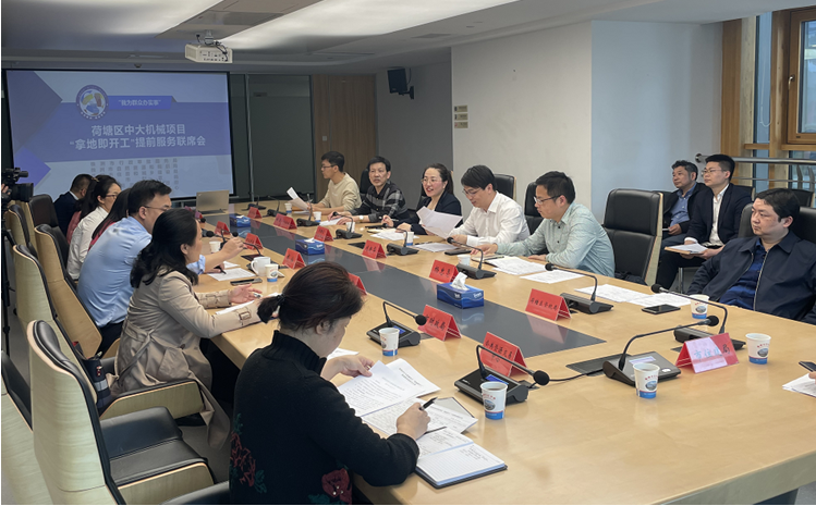 4月21日,荷塘区中大风力发电机轨道交通零部件项目(以下简称“中大项目”)“拿地即开工”提前服务联席会在市民中心召开。会议由市行政审批服务局党组副书记、副局长胡灿主持,区委常委、常务副区长刘新华及市、区有关审批部门负责人参加会议。