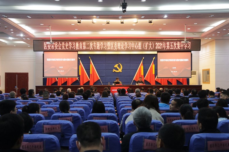 4月27日,荷塘区召开区委常委会党史学习教育第二次专题学习暨区委理论学习中心组2021年第五次集中(扩大)学习会议。会议特邀省政协常委、经济科技委员会主任吴金明作专题授课。会议由区委书记邬凌云主持,全体县级领导参加会议。