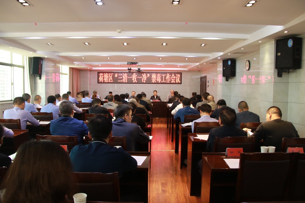 4月30日,荷塘区召开“三清一收一净”禁毒工作会,安排部署全年禁毒工作,区领导邬凌云、罗鹏程、王冬、黄团结参加会议。