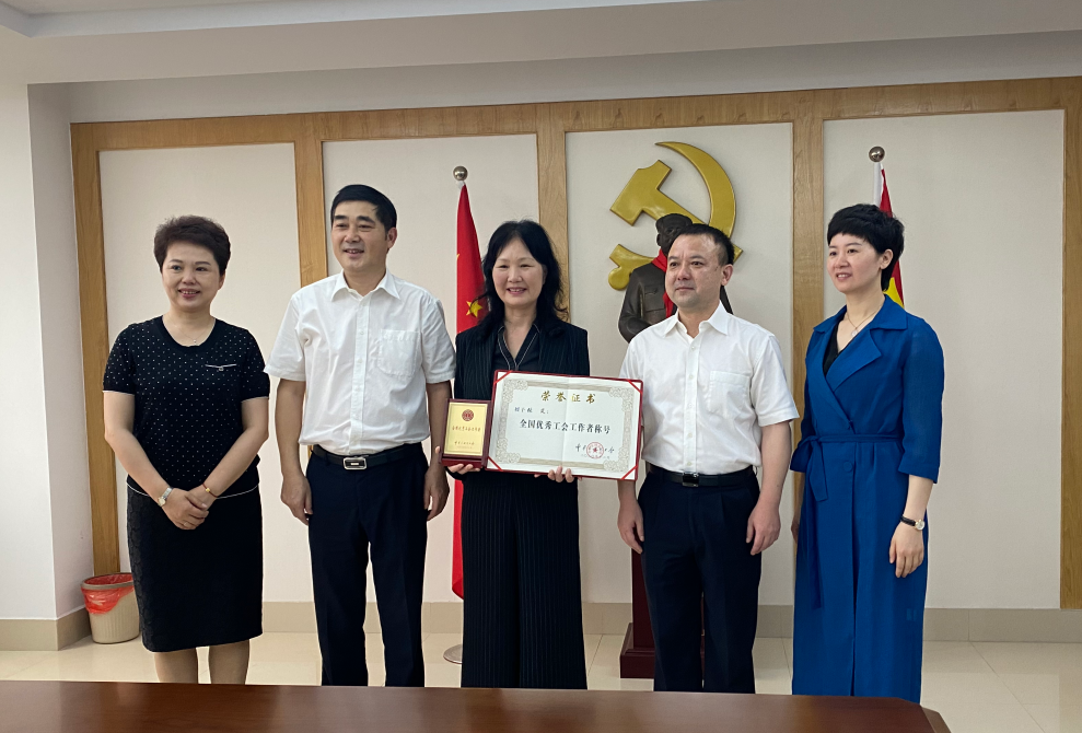 朱振湘一行还为全国优秀工会工作者获得者荷塘区总工会主席张岚颁发奖牌、证书。