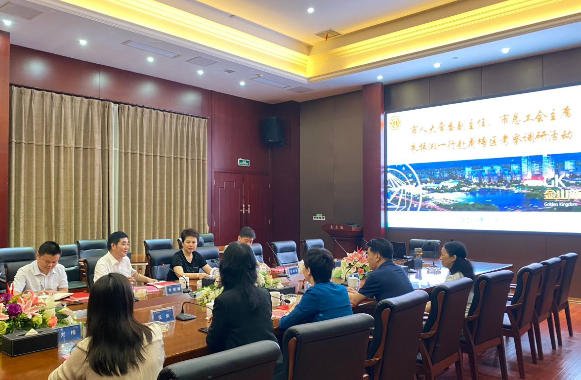 5月13日,市人大常委会副主任、市总工会主席朱振湘,市总工会副主席冯辉一行到荷塘区调研指导工作并为全国优秀工会工作者颁发奖牌、证书。区委书记邬凌云,区委副书记杨喜兰,金山科技工业园党工委书记朱福兴,区总工会主席张岚参加调研和座谈。