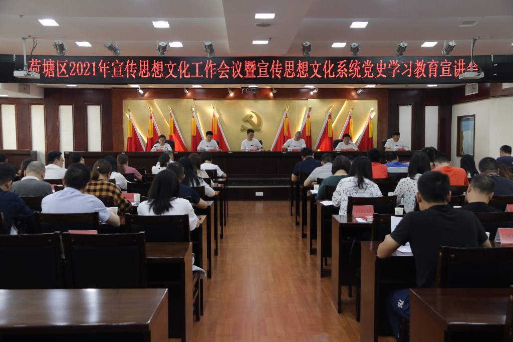 5月12日,荷塘区召开2021年宣传思想文化工作会议暨宣传思想文化系统党史学习教育宣讲会,总结2020年全区宣传思想文化工作,安排部署今年全区宣传思想文化工作,进一步统一思想,凝聚力量,组织好、开展好、落实好2021年宣传思想文化工作。区委常委、宣传部长田灿,区政协副主席、区文旅体局局长廖山出席会议。