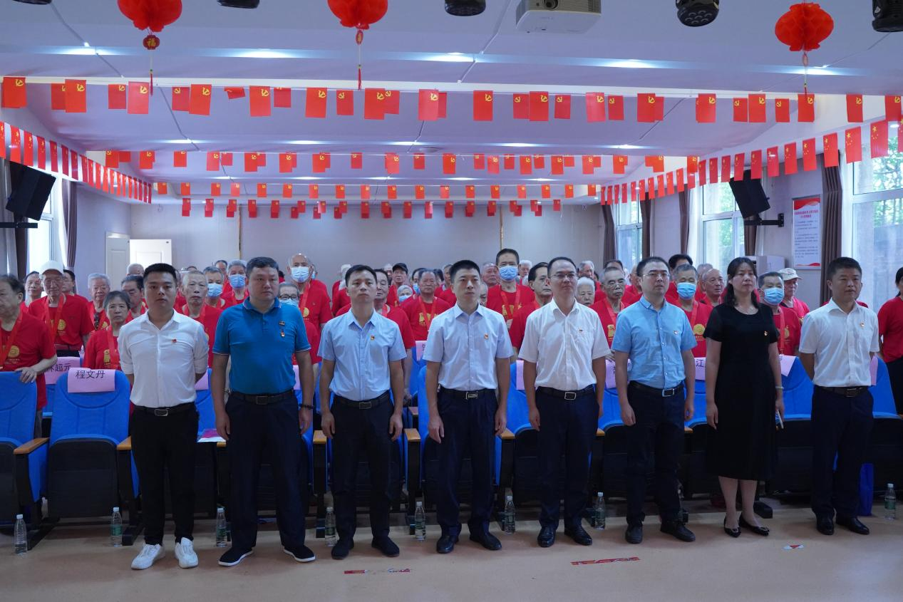 铿锵有力的国歌声后,王伟胜代表区委区政府对现场110名党龄达到50周年的老党员表示感谢,感谢他们为党的事业和荷塘的发展作出的贡献,怀着崇高敬意为他们颁发"光荣在党50年"纪念章,并领誓号召党员要向老党员看齐,继承好优良的光荣传统,做到"不忘来路,薪火相传"。