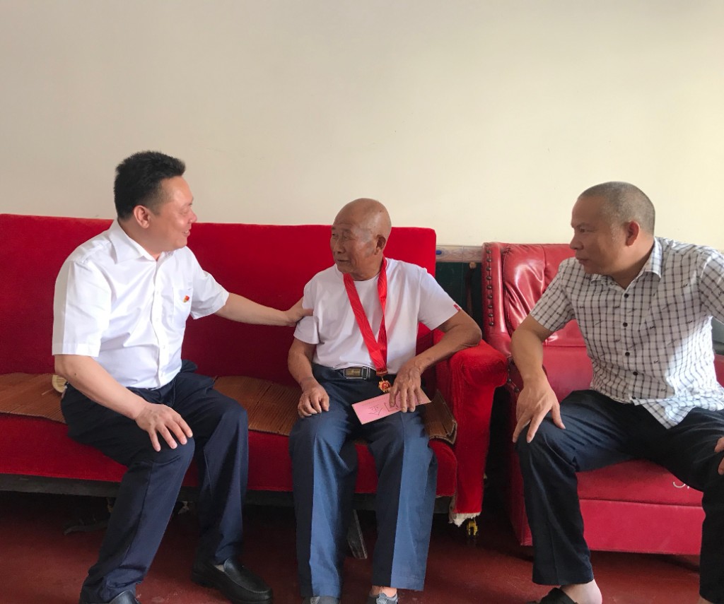 6月23日,区委常委、组织部长余鹏一行来仙庾镇进行“七一”走访慰问,并亲手为老党员颁发“光荣在党50年”纪念章,向他们致以崇高的敬意和诚挚的问候。