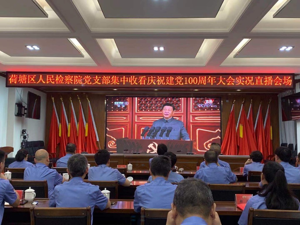 7月1日上午8时,庆祝中国共产党成立100周年大会在北京天安门广场隆重举行。荷塘区广大党员干部群众满怀喜悦和激情,认真收听收看大会实况直播,共同见证这一伟大时刻,共同庆祝中国共产党的百年华诞。