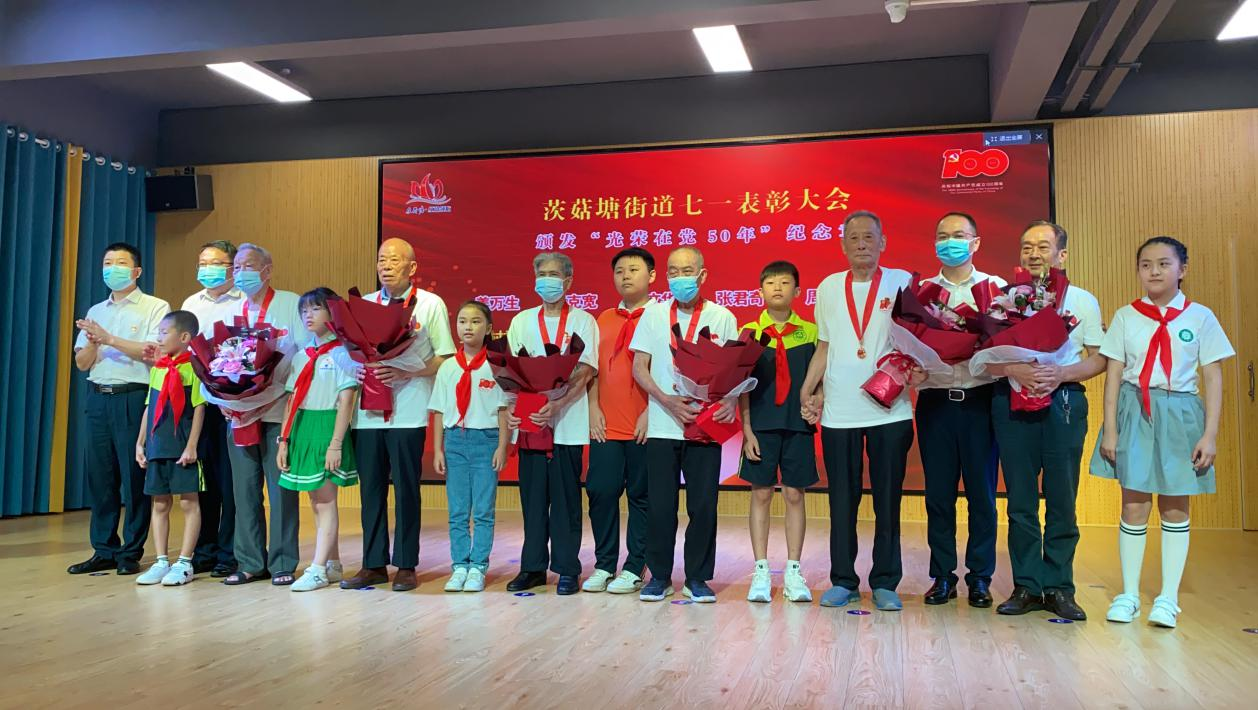 在观看了前期上门颁发"光荣在党50年"纪念章视频及"我想对党说"视频后,街道为11名老党员代表颁发"光荣在党50年"纪念章。老党员代表现场畅谈感想、心情激动不已,表示今后会一直践行党的宗旨,拥护党的领导,做出自己的一份贡献。