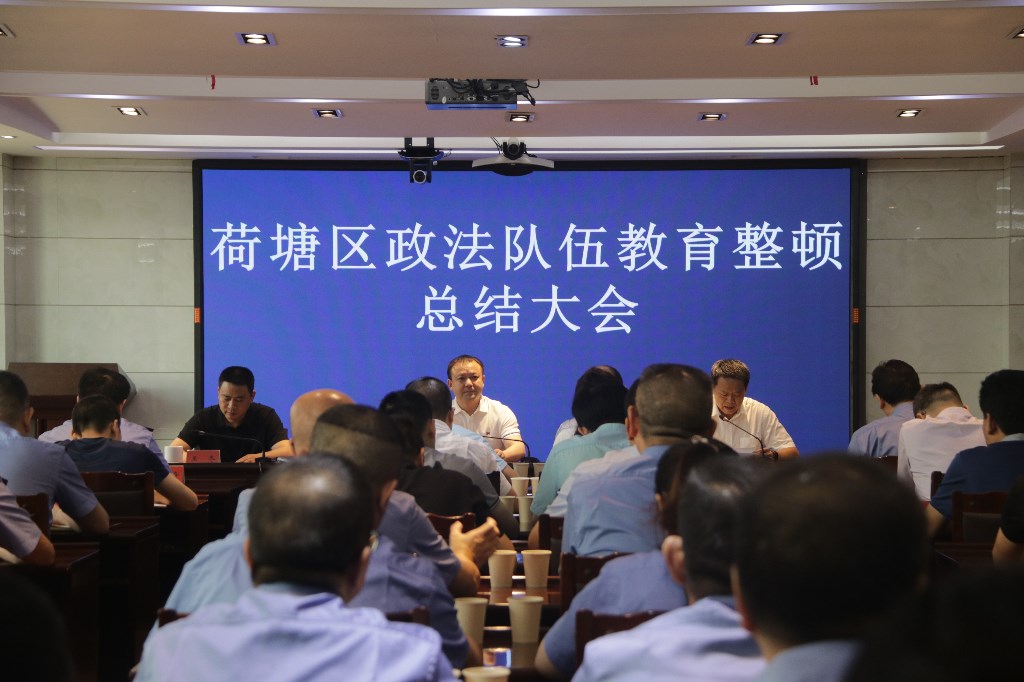 7月8日,荷塘区召开政法队伍教育整顿总结大会,通报全区政法队伍教育整顿工作开展情况,总结成绩,部署整改落实、常治长效等工作。区领导邬凌云、郑志富、王冬、黄团结、黄玉丰、陈卫华、龙志奇出席会议。