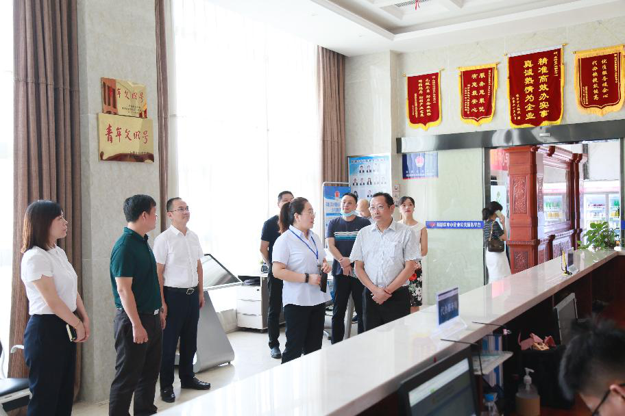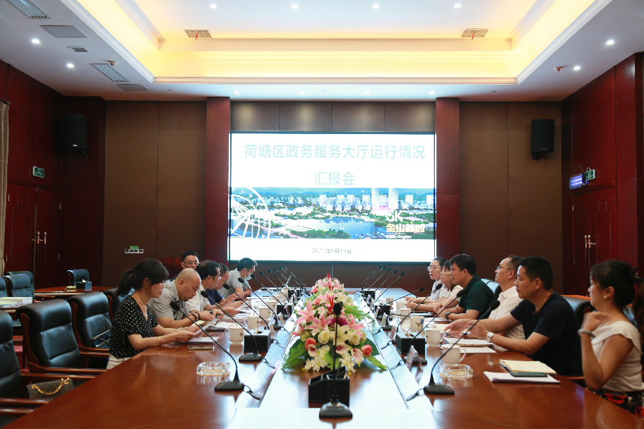 9月16日,省政务服务检查组来荷检查交流,市行政审批服务局党组书记姜衡湘,局长郝建东,党组成员、副局长欧阳政,区委常委、副区长刘定光,金山科技工业园管委会主任王荣陪同。