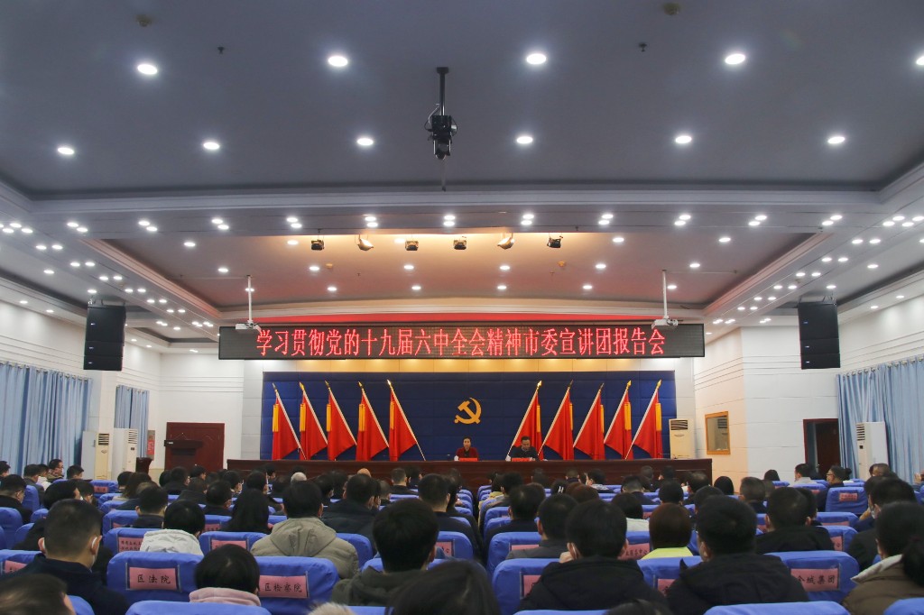 1月10日上午,荷塘区召开学习贯彻党的十九届六中全会精神市委宣讲团报告会。市委宣讲团成员、市委常委、宣传部部长江小忠作宣讲报告,会议由区委书记方靖主持,全体县级领导,区直部门(单位),区委、区政府直属事业单位,市直驻区分支机构,区属平台公司党政主要负责人,镇(街道)党政主要负责人及宣统委员,各村(社区)书记参加学习。