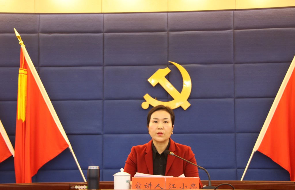 江小忠紧紧围绕习近平总书记在党的十九届六中全会上的重要讲话精神和全会审议通过的《决议》,从深刻领会党的百年奋斗重大成就和历史经验的重大意义、党的百年奋斗的初心使命和重大成就,以及深刻认识中国特色社会主义新时代的历史性成就和历史性变革、深刻把握“两个确立”的决定性意义、深刻认识以史为鉴、开创未来的重要要求、从党的百年奋斗历程中汲取智慧和力量等六个方面进行了系统的宣讲和阐释。