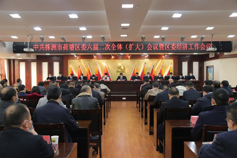 在做好疫情防控的基础上,1月11日,荷塘区召开区委六届二次全体(扩大)会议暨区委经济工作会议,以习近平新时代中国特色社会主义思想为指导,全面贯彻落实党的十九大和十九届历次全会精神,按照中央、省委、市委经济工作会议及省市党代会精神的总体要求,回顾总结2021年工作,研究部署当前和今后一个时期经济社会发展任务,动员全区上下开拓创新、砥砺奋进,以更昂扬的精神、更创新的举措、更务实的作风,加快推进“一区两城”建设,奋力谱写荷塘高质量发展新篇章,以优异成绩迎接党的二十大胜利召开。区委书记方靖出席会议并发表讲话。区委副书记、区长罗鹏程部署2022年经济工作。会议由区委副书记、政法委书记杨喜兰主持。