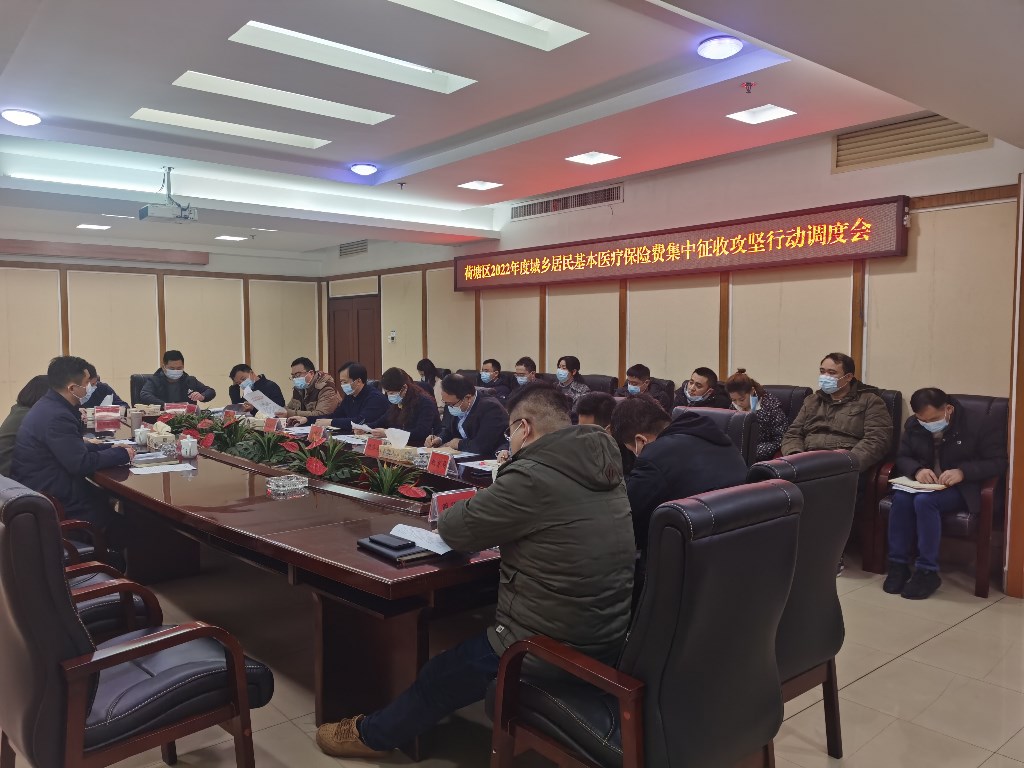 1月21日下午,荷塘区召开2022年度城乡居民基本医疗保险费集中征收攻坚行动调度会。区委副书记、区长罗鹏程出席会议,会议由副区长罗曼主持。