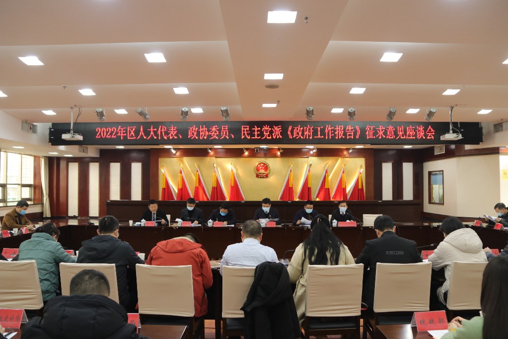 2月15日,荷塘区召开2022年区人大代表、政协委员、民主党派《政府工作报告》征求意见座谈会,区委副书记、区长罗鹏程出席会议并讲话,区领导王冬、周湘雄、向前进、杨能华、王荣出席会议。