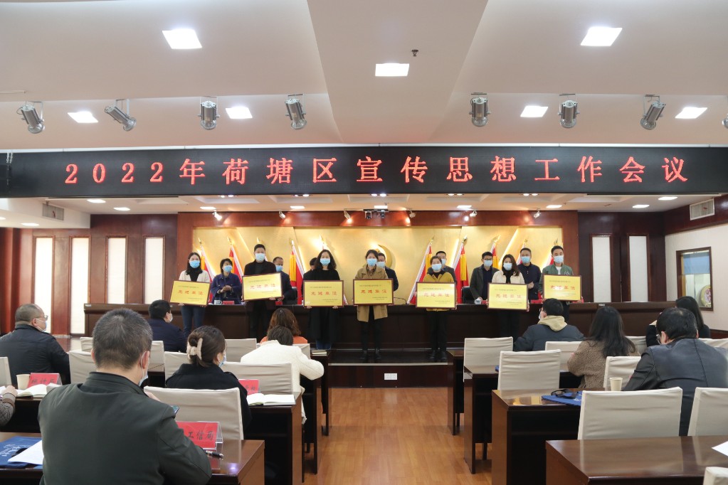 会上,区委宣传部常务副部长张智春传达了全国、全省、全市宣传部长会议等会议精神。区委宣传部副部长唐珺泽通报了1-2月份全区各单位供稿情况。区委宣传部副部长刘梦宸通报了2021年度荷塘区宣传思想文化工作先进单位及优秀个人名单,并对先进单位予以颁奖。