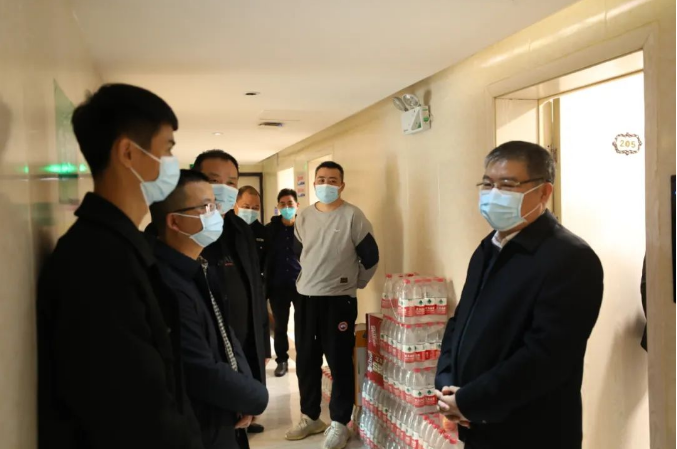 在金科集团驻点酒店新华都主题酒店时,邓为民详细查看了酒店消杀、管理及工作人员防护措施等工作落实情况,对驻守酒店的所有工作人员进行了慰问,并对新华都主题酒店的防控管理工作表示充分肯定。