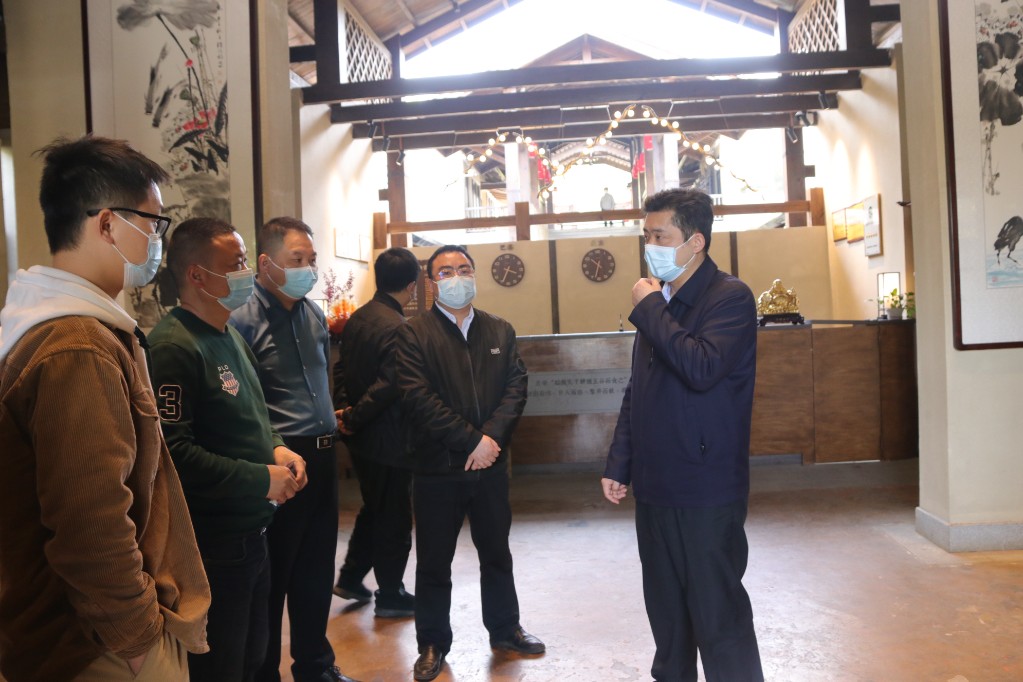 在耕食记门口,罗鹏程查看了人员登记台账及场所码、行程码查验等内容,询问了环境消杀、简办酒席等疫情防控举措落实情况。罗鹏程表示,餐饮民宿单位切不可掉以轻心,要深刻认识当前疫情防控形势,对外来游玩人员,严格管控查实,守住食品安全和疫情防控的强大防线。