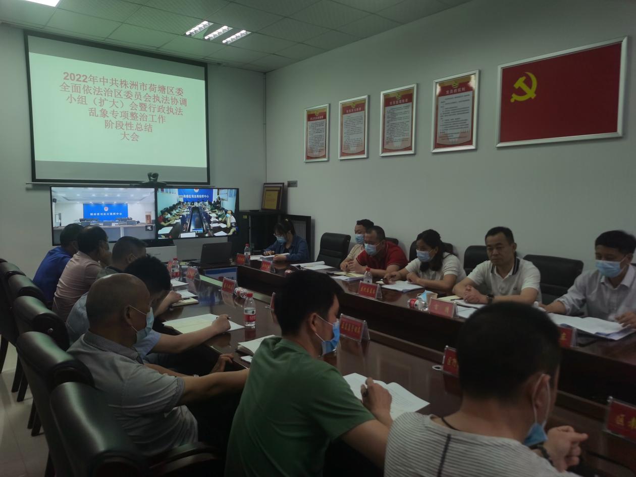 为切实做好2022年行政执法工作,严格规范公正文明执法,进一步优化我区法治化营商环境。4月27日下午,荷塘区司法局局长易东主持召开2022年中共株洲市荷塘区委全面依法治区委员会执法协调小组(扩大)会议暨行政执法乱象专项整治工作阶段性总结大会。荷塘区人民政府副区长、公安荷塘分局局长言清,执法协调小组成员单位及区相关行政执法单位分管领导参加会议。