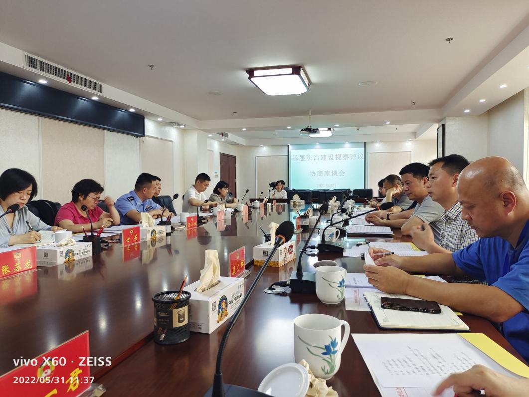 在随后召开的座谈会上,区司法局党组书记、局长易东向视察组就荷塘区基层法治建设情况做了专题汇报。参加座谈会的与会代表一致认为,荷塘区基层法治建设及司法行政工作在区委、区政府的坚强领导下,人大、政协的关心支持下,各部门协同努力取得了长足进步。
