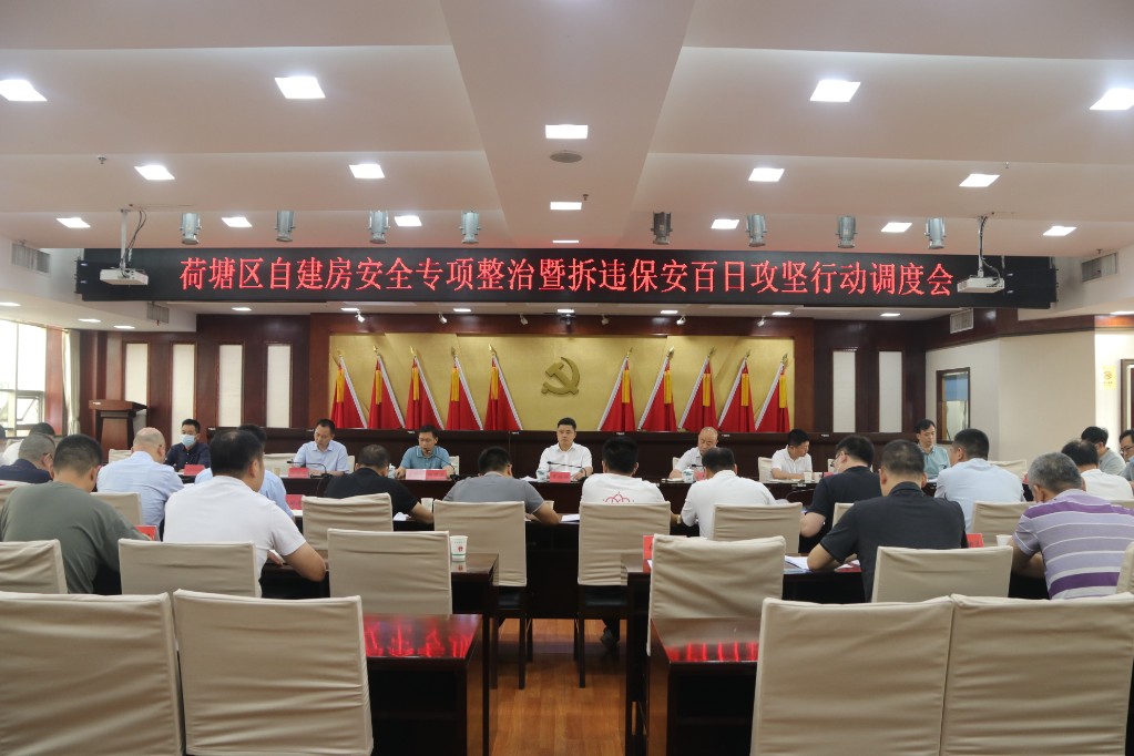 6月16日上午,荷塘区组织召开自建房安全专项整治暨拆违保安百日攻坚行动调度会。会议全面总结了前阶段全区自建房安全专项整治的工作情况,并对下一阶段工作重点和任务进行部署安排。区委副书记、区长罗鹏程出席会议并讲话,副区长向前进主持。