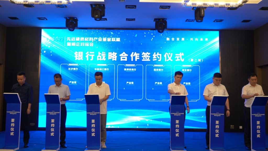 签约仪式上,金石投资有限公司等6家基金公司与株洲市先进硬质材料产业链签约,成功组建“先进硬质材料产业基金联盟”。中国建设银行株洲市分行等11家银行机构与株洲市先进硬质材料产业链签署战略合作协议。4家先进硬质材料企业与银行机构或基金进行了银行融资项目合作签约和基金投资项目合作签约。