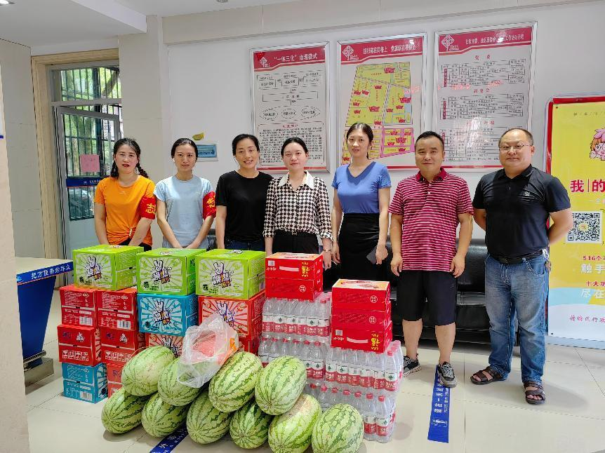 8月18日,区政协副主席(兼)、区卫健局局长冯晓带领法制界别工作组委员,走访慰问西子社区工作人员及志愿者,送上矿泉水等防暑物资。