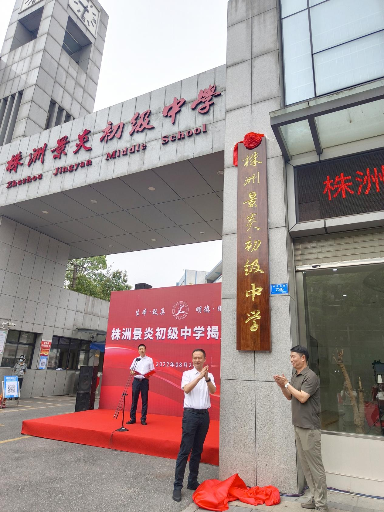 区委书记方靖为株洲景炎初级中学揭牌