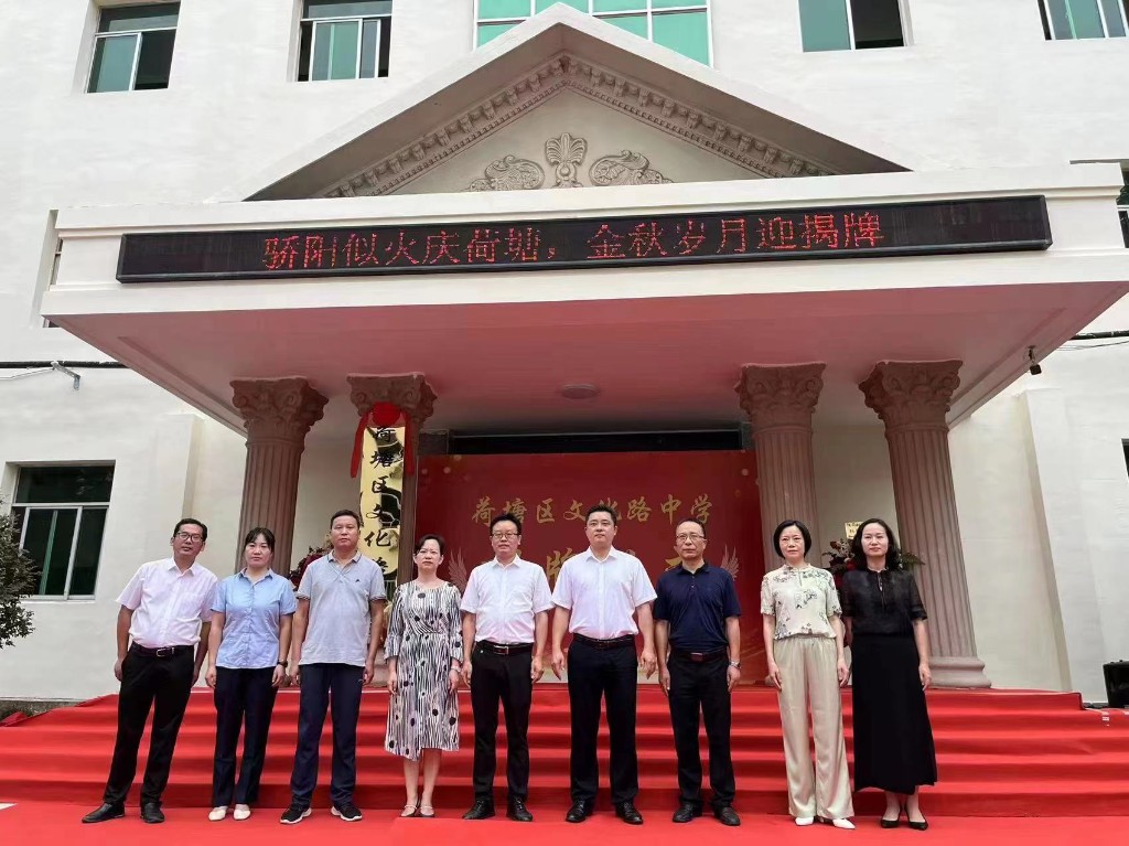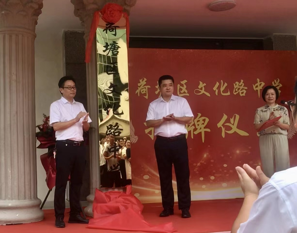 区委副书记、区长罗鹏程为荷塘区文化路中学揭牌
