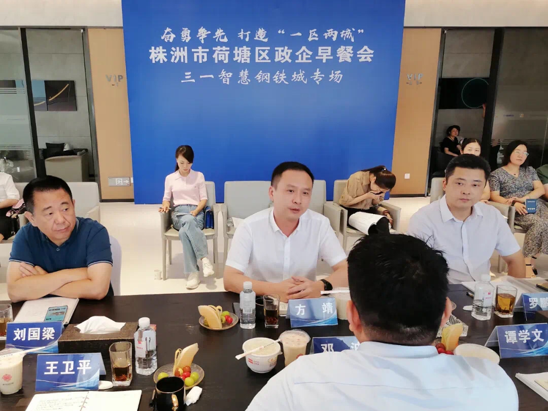 9月3日,荷塘区2022年第三次政企早餐会在三一智慧钢铁城产业服务中心举行,区委书记方靖,区委副书记、区长罗鹏程与三一智慧钢铁城项目及项目的合作方、产业上下游企业、入驻企业部分代表共8名企业家共进早餐,在轻松的氛围中听意见、解难题、谋发展。区领导刘国梁、陈柏文、单丹、肖昊昕参加。