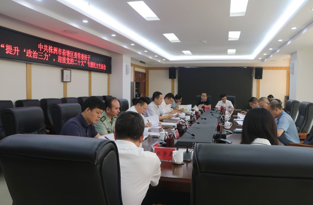 按照市委统一部署,9月8日,荷塘区委常委班子召开“提升‘政治三力’,迎接党的二十大”专题民主生活会。本次会议主题是深入贯彻党的十九届六中全会、省第十二次党代会、市第十三次党代会精神、区第六次党代会精神,大力弘扬“闯、创、干”工作作风,坚决落实“发愤图强、重振雄风”指示要求,进一步筑牢“培育制造名城、建设幸福株洲”、打造“一区两城”的思想和实践根基,引导全区党员干部增强“四个意识,坚定“四个自信”,忠诚捍卫“两个确立”,坚决做到“两个维护”,不断提升政治判断力、政治领悟力、政治执行力,以实际行动迎接党的二十大胜利召开。