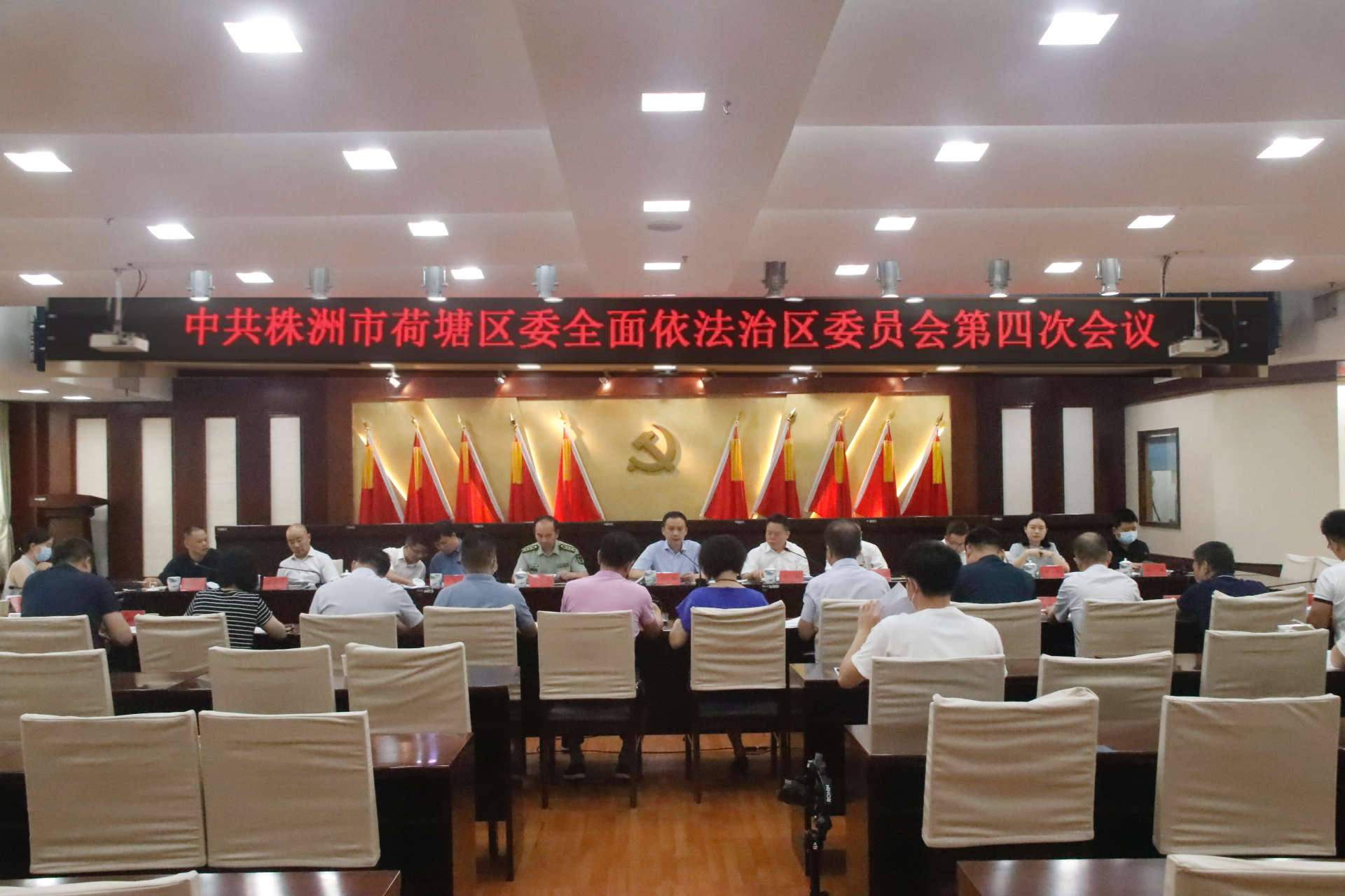 会上传达了中央全面依法治国委员会第五次、省委全面依法治省委员会第六次精神以及市委全面依法治市委员会第四次会议精神;审议通过了《区委全面依法治区委员会2021年工作总结报告》《2022年全面依法治区工作要点》《荷塘区落实〈法治株洲建设规划(2021——2025年)〉责任分解工作方案》、区委全面依法治区委员会执法、司法、普法三个协调小组2021年工作总结及2022年工作打算等文件。参会领导围绕文件内容,结合工作实际进行了研讨,并提出了相关建议。