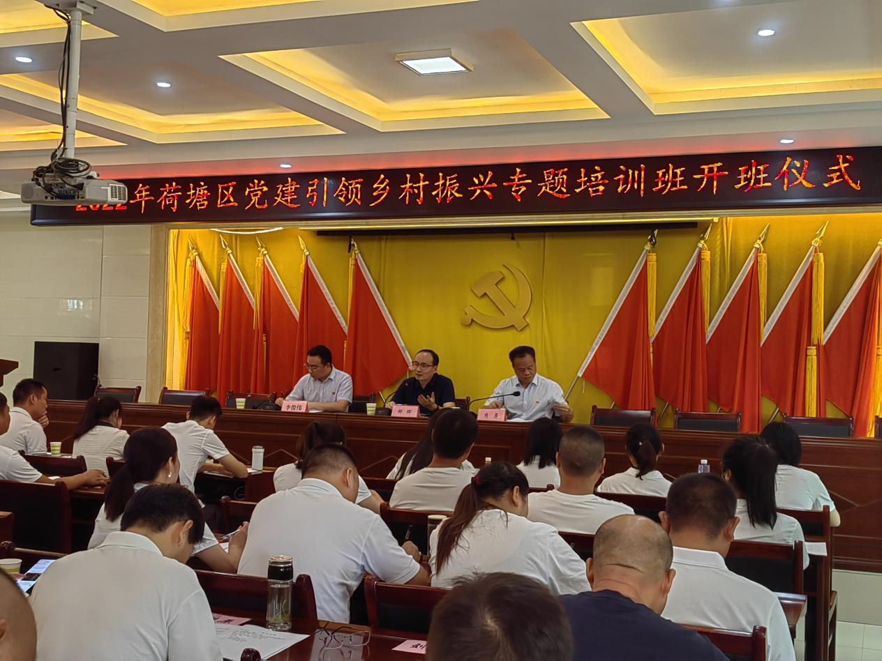 为深入学习贯彻习近平总书记重要讲话精神,在全面推进乡村振兴新征程中锻造干部队伍,深入推进“干部能力提升年”和“动力党建·实力乡村”工作要求,9月19日,荷塘区在仙庾镇举办党建引领乡村振兴专题培训班。区委常委、组织部长邹晖出席仪式并讲话,仙庾镇党委副书记、镇长李俊伟致辞,市、区驻村干部和青年村“两委”共53人参加培训。