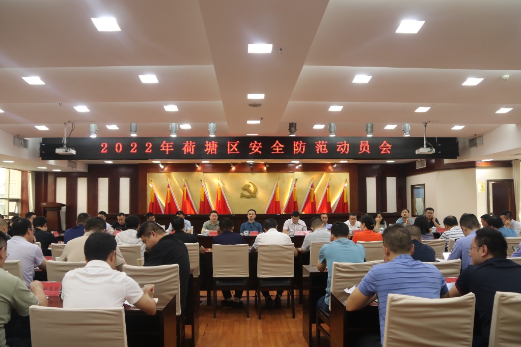 9月22日,荷塘区召开2022年安全防范动员会,学习贯彻习近平总书记关于安全生产重要论述,进一步贯彻落实省、市安全防范动员电视电话会议精神,对全区安全防范工作进行再动员、再安排、再部署,全力以赴做好防风险、保安全、护稳定各项工作。区委书记方靖出席会议并讲话,区委副书记、区长罗鹏程主持会议。区领导余鹏、李小冬、陈柏文、张宇晨、田业强、罗曼、言清、向前进、陈佳敏、肖昊昕参加会议。