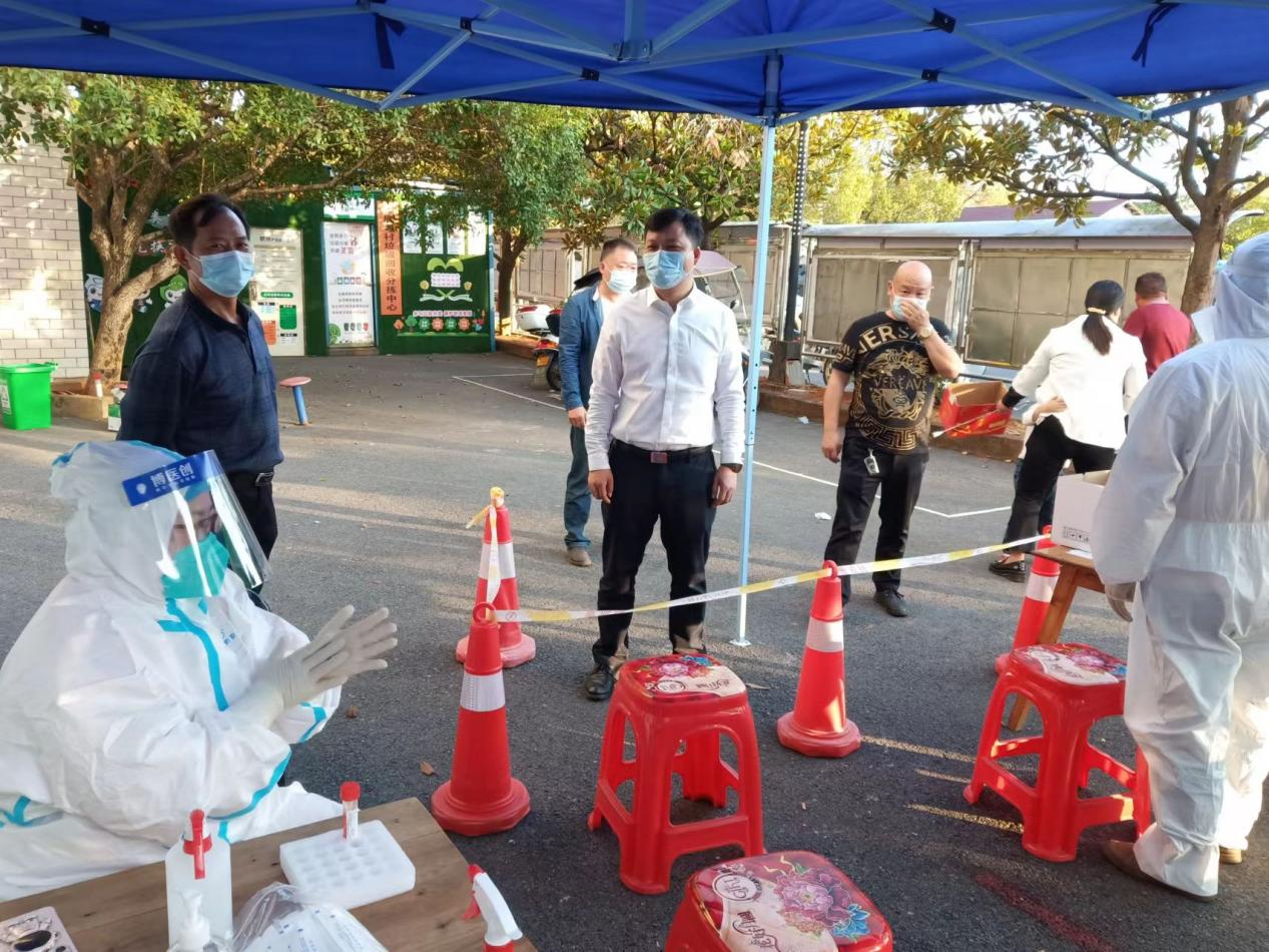 11月2日,区委常委、组织部部长邹晖到联点月塘街道督导疫情防控工作。